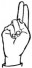На ћирилици написано ЕЛЕНА КЛЕМЕНОВИЋ састоји се из 15 слова [?]. Исписано ћириличном једноручном азбуком за глувонеме:
